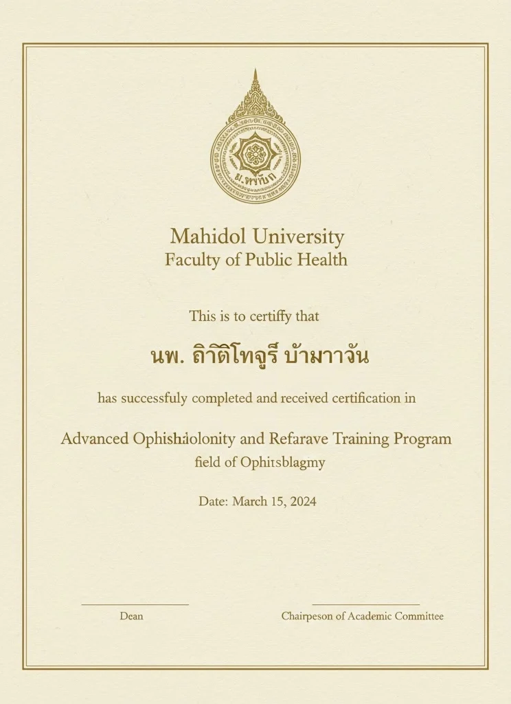 “ดวงตาเป็นอวัยวะที่มีความสำคัญอย่างยิ่ง และการรักษาหรือผ่าตัดดวงตานั้น จำเป็นต้องอาศัยทั้งความรู้ ความชำนาญ และความเข้าใจในโครงสร้างดวงตาของแต่ละบุคคล สำหรับผม การรักษาที่ดีที่สุดคือการรักษาที่เหมาะสมกับผู้ป่วยแต่ละราย ไม่ใช่เพียงแค่การแก้ไขปัญหา แต่ต้องคำนึงถึงความปลอดภัย ผลลัพธ์ระยะยาว และคุณภาพชีวิตของผู้ป่วยหลังการรักษา”